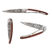 Deejo Leichtgewichtsmesser, TATTOO 37g LION, Stahl Z40C13,, Coralwood, Liner-Lock, Mikrofaser-Etui, Clip, Magnet-Box