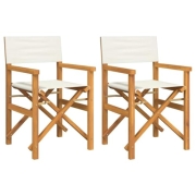 vidaXL Regiestühle 2 STK. Klappbar Creme Massivholz Teak, klappbarer Regiestuhl, Camping-Regiestuhl, Klappstuhl, Outdoor-Regiestuhl, Garten-Regiestuhl