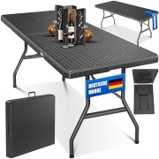 KESSER® Buffettisch Tisch klappbar Kunststoff 183x76cm Rattan Optik Campingtisch Partytisch Klapptisch Gartentisch 6 Personen Garten Terrasse & Balkon zusammenklappbar inkl. Tragegriff Anthrazit