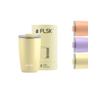 FLSK Kaffeebecher – Premium coffee to go-Becher aus Edelstahl – 100 % auslaufsicher, BPA-frei & doppelwandig – hält 3 h heiß (lemon, 350 ml)
