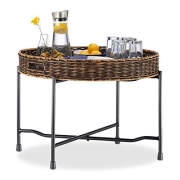 Relaxdays Serviertisch Rattan, rundes Tablett, geflochten, klappbarer Ständer aus Metall, HxD: 47x66cm, natur/schwarz