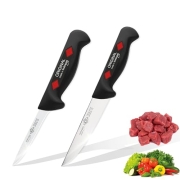 EIKASO Solingen Metzgermesser Set 2tlg, von Profis - für Profis und Privat Ausbeinmesser Fleischmesser aus 1.4116 Molybdänstahl, rostfrei, Handabzug, rote extra rutschfeste Polypropylengriffe