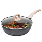 CAROTE Bratpfanne Wokpfanne mit Deckel 28 cm | Pfanne mit Antihaftbeschichtung | Tiefe Bratpfanne Für alle Herdarten inklusive Induktion