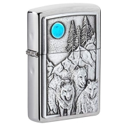 Zippo 49295 Unisex-Erwachsene and Moon Emblem Brushed Pocket Lighter Feuerzeug, Gebürstetes Chrom Wolf Pack und Mond, Einheitsgröße