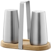 ZACK 20875 "BEVO" Salz- / Pfefferstreuer mit Menage, Edelstahl matt und geöltem Bambus, Plata, 7.4 x 14.0 x 14.2 cm
