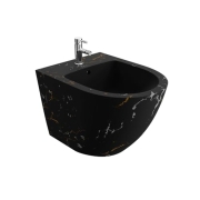 LAVITA Universal Wand-Bidet Sofi Checked Gold mit Hahnloch und Überlaufschutz aus Keramik Sitzwaschbecken zur Montage an der Wand Hygienisch und Pflegeleicht 36,5x49x32,5 cm