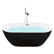 Acryl Badewanne oval freistehend schwarz mit Armatur Überlauf 170 x 80 cm Rotso