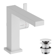 hansgrohe Tecturis E - Waschtischarmatur mit Push-Open Ablauf, energiesparend (CoolStart), Wasserhahn Bad, Auslauf Höhe 133 mm, Mischbatterie Waschbecken wassersparend (EcoSmart+), Mattweiß, 73020700