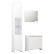 vidaXL Badmöbel Set 3-TLG. Hochschrank Unterschrank Spiegel Waschbeckenunterschrank Badezimmermöbel Badschrank Badezimmerschrank Hochglanz-Weiß Holzwerkstoff
