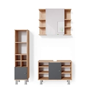 Vicco Badmöbel-Set Fynn, Goldkraft Eiche/Anthrazit, 3 Teile, mit Midischrank Tür klein
