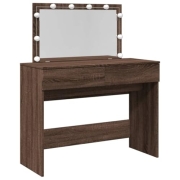 vidaXL Schminktisch, Frisiertisch mit Spiegel LED-Beleuchtung, Kosmetiktisch mit 2 Schubladen, Frisierkommode für Schlafzimmer, Modern, Braun Eichen-Optik