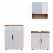 Vicco Badmöbel-Set Irma, Eiche/Weiß Hochglanz, 3 Teile, mit Unterschrank 60 cm