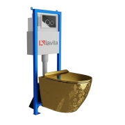 Lavita LAV 101 Vorwandelement für WC 40cm + Wand Hänge Tiefspül WC SOFI SLIM GOLDEN NEVER DIE Spülrandlos + Bedienplatte LAV 200.3.5 Gold | Komplettset | Unterputz Spülkasten | Toilette Komplett Sett