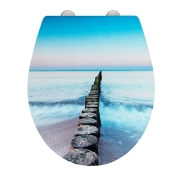 WENKO WC-Sitz Hochglanz Acryl Strandkorb, High Gloss Oberfläche, hygienischer Toilettendeckel mit Absenkautomatik, aus antibakteriellem Duroplast, 39 x 45 cm