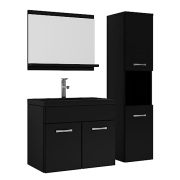 Die Set besteht aus einem Unterschrank mit zwei Türen, einem schwarzen Kunstmarmor-Waschbecken, einem Spiegel und einem zusätzlichen Seitenschrank Gefertigt aus FSC-zertifiziertem Spanplattenmaterial…