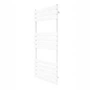 Flacher Handtuchheizkörper 1200mm x 450mm | Wandheizkörper Handtuchwärmer Paneelheizkörper | Glänzend Weiß Kohlenstoffstahl | Badezimmer [Inkl. Reinigungsbürste, Befestigungsset & Halterungen]