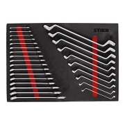 STIER Ringmaul- & Doppelringschlüsselsatz, 27-teilig, in Weichschaumeinlage, als Einlage für den STIER Werkstattwagen, Chrom-Vanadium-Stahl in mattchromierter Ausführung