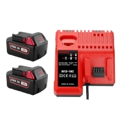 CYDZ® 2 Stück 18V 5.0Ah Akku für Milwaukee M18 48-11-1828 48-11-1840 C18B M18BX Li18 M18B4 M18 XC mit Milwaukee Ladegerät für M12 M18