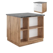 Vicco Kücheninsel Fame-Line, Weiß Hochglanz/Goldkraft Eiche, 90 cm mit Schublade, ohne Arbeitsplatte