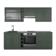 Vicco Küchenzeile Fame-Line, Grün-Gold Landhaus/Anthrazit, 235 cm ohne Arbeitsplatte