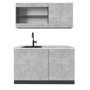 Vicco Singleküche R-Line, Küchenzeile Single, Beton/Anthrazit, 140 cm, AP Marmor