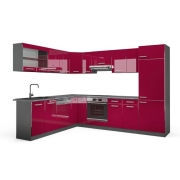 Vicco Eckküche R-Line, Bordeaux Hochglanz/Anthrazit, 227 x 287 cm ohne Arbeitsplatte