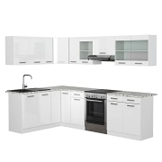 Vicco Eckküche Rick, Küchenzeile in L-Form, Weiß/Weiß Hochglanz, 267 x 167 cm, AP Marmor