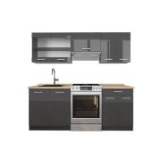 Vicco Küchenzeile R-Line, Anthrazit Hochglanz/Anthrazit, 200 cm ohne Arbeitsplatte