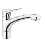 Geschlossener Hebel, Einlochmontage, S-Pointer Luftsprudler M 24 x 1, Durchflussklasse Z Schwenkbare (110°) herausziehbare Geschirrbrause mit autom. Umstellung: Brause/Strahl Eigensicher gegen…