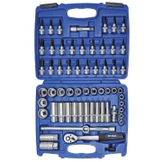 Dieses Steckschlüsselset besteht aus 61 Teilen und wird in einem blauen Industiekoffer geliefert. Im Lieferumfang enthalten sind: eine Hebel-Umschaltknarre, 72 Zähne feinverzahnt, 1 Kippverlängerung…