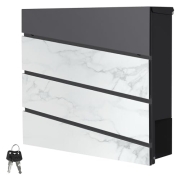 ML-Design Briefkasten 37x37x11 cm Anthrazit/Weiß-Marmoroptik, Stahl, Postkasten mit Zeitungsfach, Abschließbar 2 Schlüssel, Moderner Design Wandbriefkasten mit Zeitungsrolle, Mailbox für Wandmontage