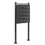 Wiltec 5er Briefkastenanlage Anthrazit 270 x 513 x 1500 mm, Standbriefkasten mit 5 Fächern, Schlüssel und Namensschild, Briefkasten Postkasten mit Ständer