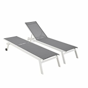 Alice's Garden - Set mit 2 ELSA Sonnenliegen aus weißem Aluminium und grauem Textilene, Liegestühle mit Mehreren Positionen und Rädern