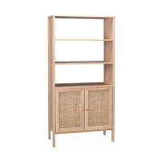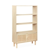 Bücherregal mit Holz- und Rohrgeflecht - Camargue - 3 Ebenen, 2 Türen