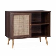 Sideboard Farbe Dunkles Holz mit Rattangeflecht 80 x 39 x 65,8 cm - 2 Ebenen - 1 Tür - Skandinavische Möbelbeine