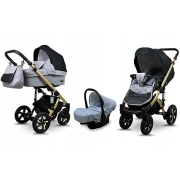 BabyLux® Bambimo Kinderwagen Set 2 in 1 - Gold Lux - incl. Babywanne, Buggy Sportsitz - Kinderwagenset - Kombikinderwagen mit Wickeltasche, Regenschutz, Moskitonetz, Cupholder usw.