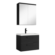 Badezimmermöbel Etna 60 cm 01 Waschbecken - Schwarz - Aufbewahrungsschrank mit Spiegelschrank Badmöbel-Set
