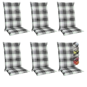 Beautissu 6er Set Hochlehner Auflagen Set Gartenstühle 120x50 cm Polster Mintgrün Kariert – 6cm Dicke Polsterauflage Bequem, rutschfest & UV-Lichtecht 5 – Stuhlkissen Sitzauflage – Sunny MK