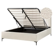 Polsterbett Bouclé Creme weiß 160x200 cm mit Bettkasten hochklappbar Sezanne