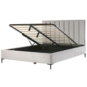 Modernes Doppelbett mit hochklappbarem Lattenrost und praktischem Bettkasten Angenehm weicher Stoffbezug. Niedrige Beine aus langlebigem Kunststoff Die Konstruktion sorgt für große Stabilität und…