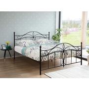 Romantisches Metallbett in edlem Schwarz Wunderschöne Formgebung, dekorativ geschwungenes Kopf- und Fußteil Geeignet für Matratzen in der Größe 180 x 200 cm Matratze, Bettwäsche und Kissen sind nicht…
