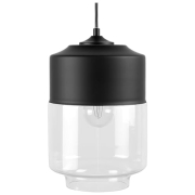 Moderne Hängelampe aus schwarzem und transparentem Glas Runder Lampenschirm aus Metall mit moderner Ausstrahlung Der moderne, runde Lampenschirm verbreitet glasklares Licht, und mit ihrer Farb- und…
