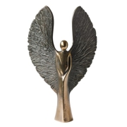 Kerstin Stark Bronze Engel in 9 cm mit dunkel patinierten Flügeln.