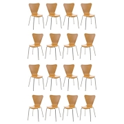 CLP 16x Konferenzstuhl Calisto Mit Holzsitz Und Stabilem Metallgestell I 16x Platzsparender Stapelstuhl, Farbe:Natur