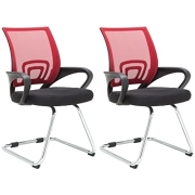 CLP 2er Set Freischwinger Eureka I Polsterstuhl mit Stoffbezug I Rückenlehne mit Netzbezug I Esszimmerstuhl mit Metallgestell, Farbe:rot