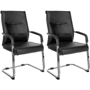 CLP 2er Set Freischwinger Besucherstuhl Hobart I Stoff- oder Kunstlederbezug, Chromgestell, Armlehnen Gepolstert I Ergonomischer Schwingstuhl, Farbe:schwarz, Material:Kunstleder