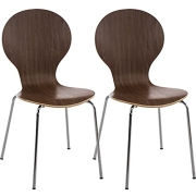 CLP 2X Stapelstuhl Diego I Konferenzstuhl Mit Holzsitz Und Stabilem Metallgestell I 2 x Platzsparender Stuhl Mit Pflegeleichter Sitzfläche, Farbe:walnuss
