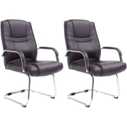 CLP 2er Set XXL-Freischwinger Attila I gepolsterter Besucherstuhl mit Kunstleder-Bezug I Bis 180 kg belastbar, Farbe:braun