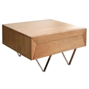 DELIFE Wohnzimmertisch Kayu Akazie Natur 60x60 cm 2 Schübe V-Fuß Edelstahl Couchtisch