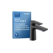 Duravit Tulum Waschtischarmatur, Größe S (Auslauf Höhe 97 mm), Wasserhahn Bad, Waschbecken Armatur mit energiesparender FreshStart-Funktion, Schwarz Matt